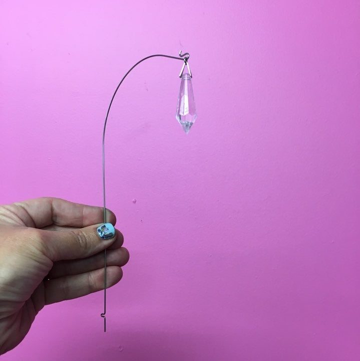Sold singly. 7.5 inch wire. With faux crystal tear drop. Photo does not do these justice, clear crystals are very hard to photograph.