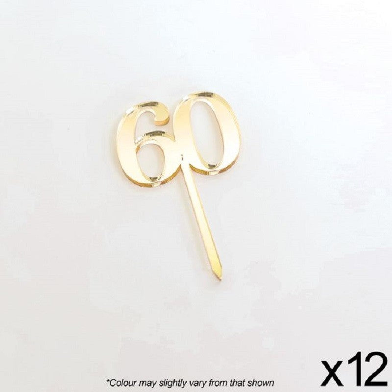 Cupcake acrylic toppers pack of 12 number 60 Gold
