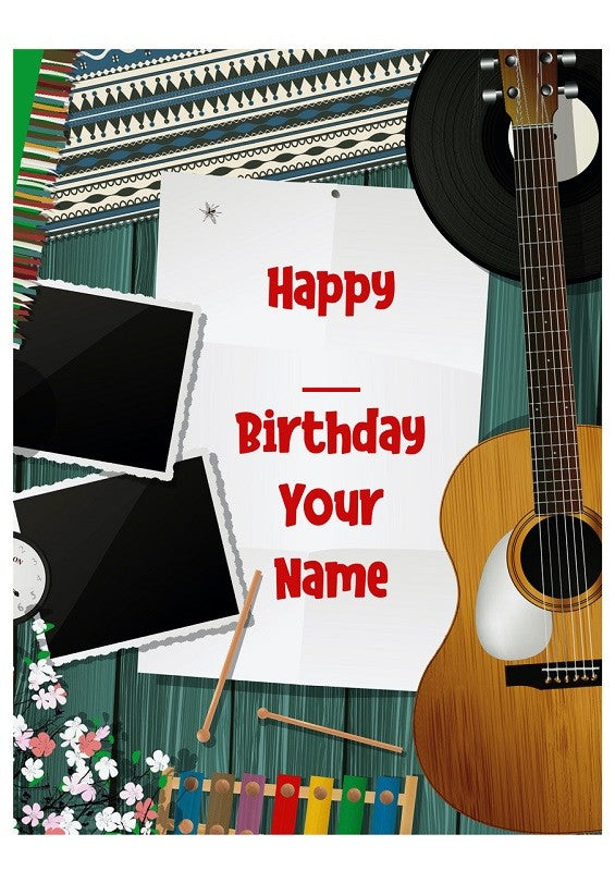 Custom edible icing image A4 Music themed with guitar