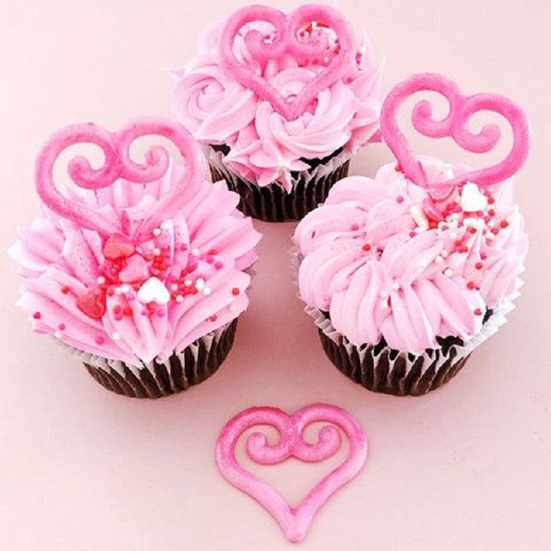 Decorative dessert accent chocolate mould in heart shape. Use to add a flourish to the top of desserts or cupcakes.