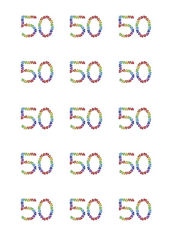 Design Sheet edible images 50th Birthday No 50 Rainbow Hearts