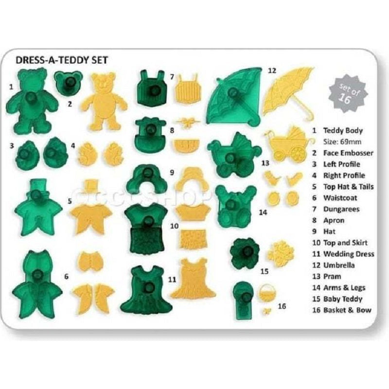 Dress A Teddy 16 piece teddy bear and clothes icing & gum paste cutter set by Jem