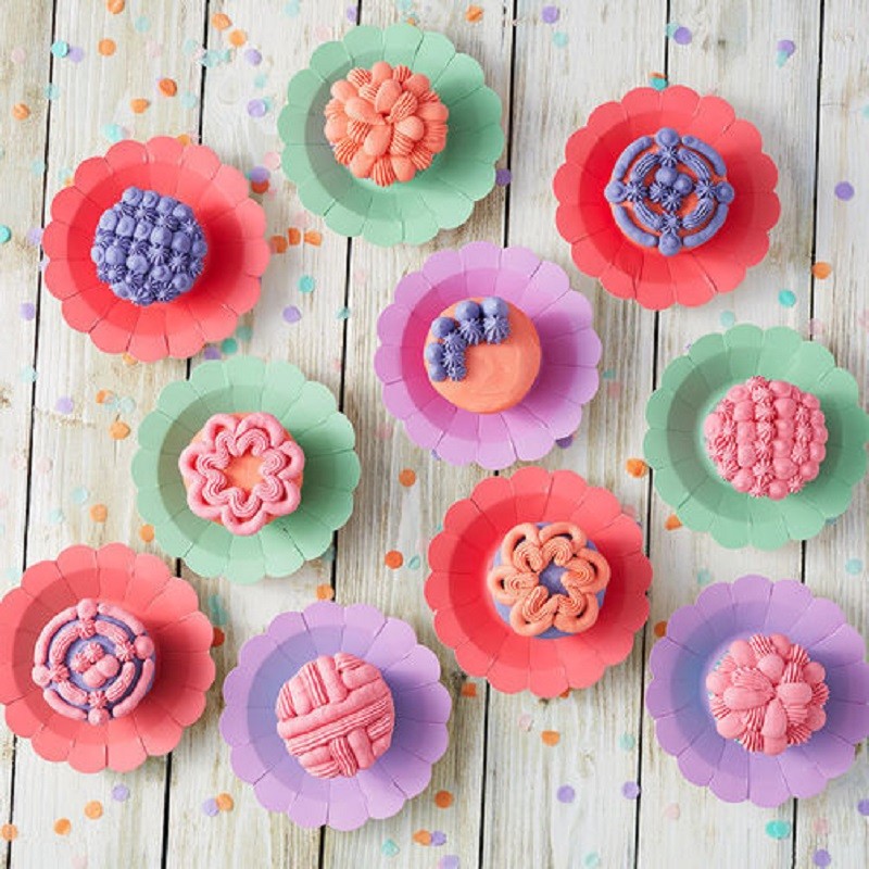 It's a whole new way to get creative with buttercream icing. A round and star tip are combined in this dual plastic decorating tip so you can pipe all kinds of fun designs on your cakes, cookies and cupcakes. Includes two disposable decorating bags.