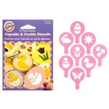 Turn plain treats into springtime visions. Just place one of the fun designs over your baked treat, then sprinkle with coloured sugars or use Food Writer edible colour markers or food spray 12 different stencil designs. Photograph "Copyright 2004 Wilton Industries, Inc.".