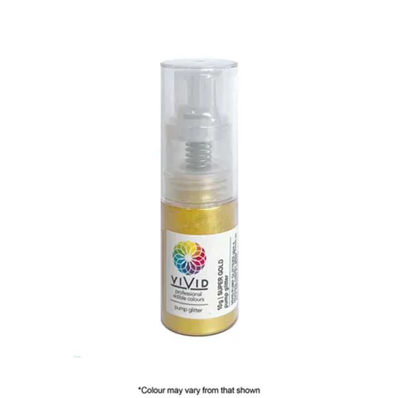 VIVID PUMP GLITTERS give a stunning, metallic glitter finish to your desserts & treats!. They have easy to use spray pumps to spray beautiful bling onto your cakes, desserts and more.