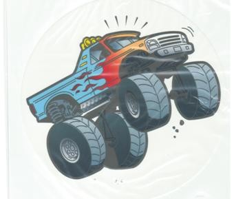 19cm in diameter. Round white edible image with truck motif. An instant decorating solution, just place on top of a homemade or store bought cake. Decorate your cake, as simply or elaborately as you like.