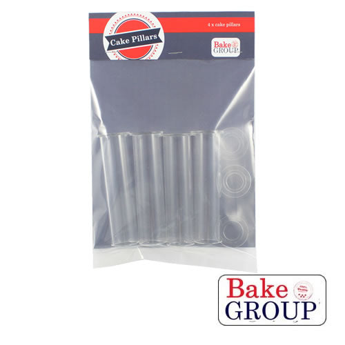 Acrylic CAKE PILLARS (Set of 4) - 15cm Take your cake to new heights with these high quality clear acrylic fillable cake pillars.