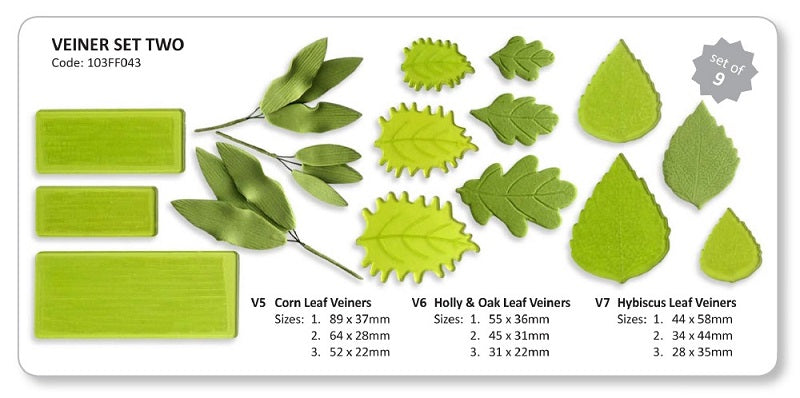 3 Corn Leaf Veiners, 3 Hibiscus Leaf Veiners and 3 Holly and Oak Veiners.