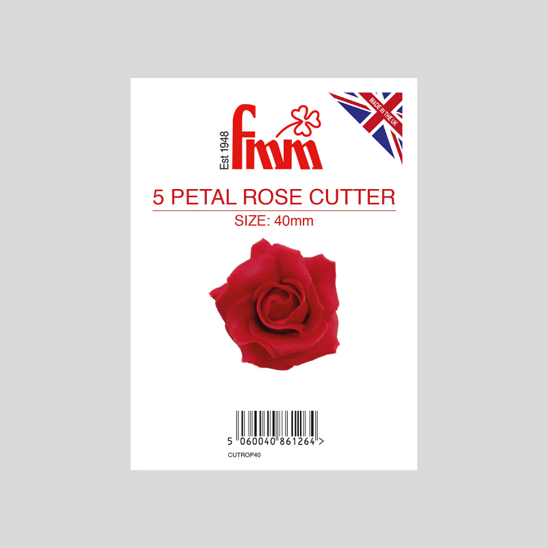 Always use a good quality modelling paste rolled thinly and allowed to dry for a few minutes for best results, if using Sugar paste add a little Tylo or CMC to strengthen the paste and speed up drying40mm 5 petal rose cutter. FMM