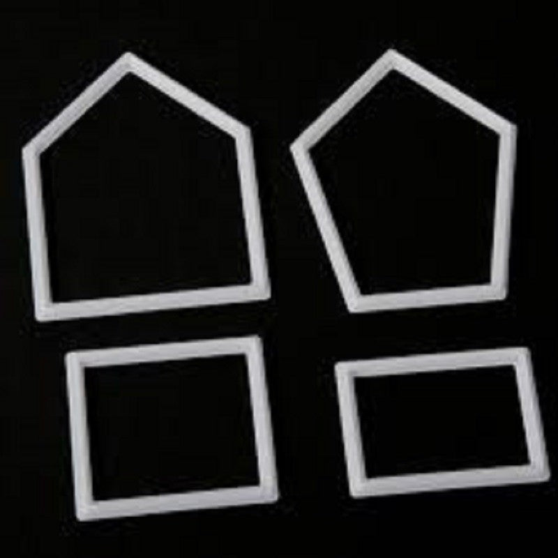 This versatile 4 piece kit has been designed to create many novelty cake topper decorations. With this set you can create a Bird House, Garden Shed, Green House, Dog Kennel, Haunted House, Ginger Bread House, House, Beach House, Sweet Shop and many more. Fantastic for so many seasonal cake themes, your only limit is your imagination. 9.5cm high centre house panel.