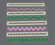 Four endless cutters that will make geometric borders including chevron zigzag, diamond hexagon and curve. The shapes can be overlaid over each other, to create many additional designs.