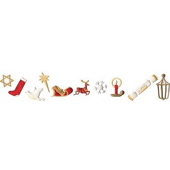Consists of a Star, Stocking, Dove, Sleigh, Reindeer, Lamp Candle, Cracker, Lantern, Icicle & Shooting Star.