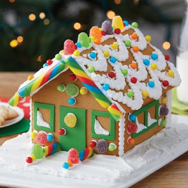 Assembled gingerbread house will be: 6.25 in. high x 7 in. x 7 in. (15,8 cm high x 17,7 cm x 17,7 cm)