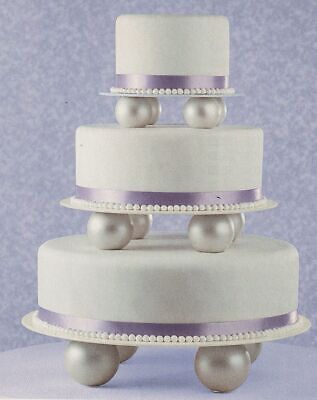 This 3 inch set is shown on finished cake, supporting bottom tier in conjunction with separator plate (sold separately). Globes are 3 inch in diameter. These base globes will not act a support between tiers