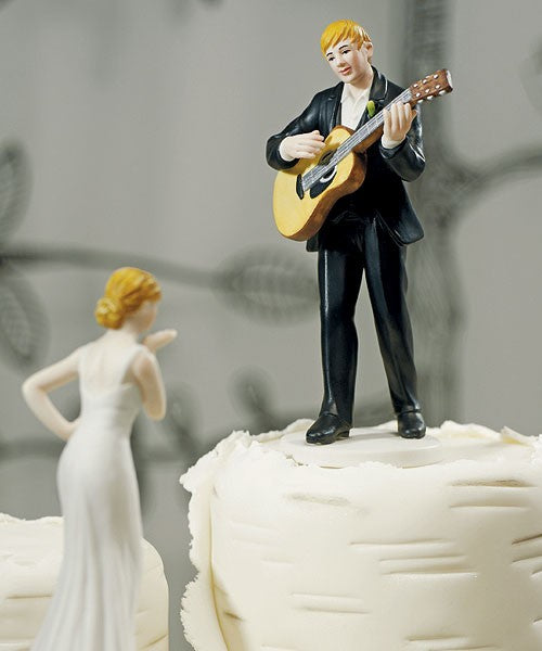This handsome Groom is in the mood for romance...music that is. Guitar in hand, he will serenade any of our Mix and Match Brides to personalise the look. Hand painted porcelain.5 cm x 13.75 cm H