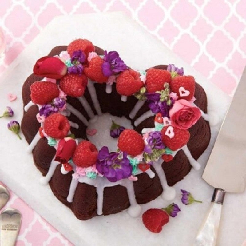 Heart-shaped fluted tube pan makes the perfect dessert for Valentine's Day, wedding showers or anniversaries