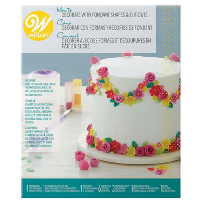Full-color instruction book shows you how to roll, cut, shape and decorate with fondant