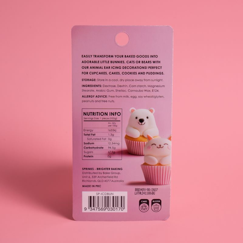 Bring your baking to life with SPRINKS Animal Ear Icing Decorations! These versatile sugar ears let you effortlessly create adorable bunnies, cats, bears, and a world of edible animals. Whether you're decorating cupcakes, cakes, cookies, or puddings, these delightful touches add charm to any dessert.