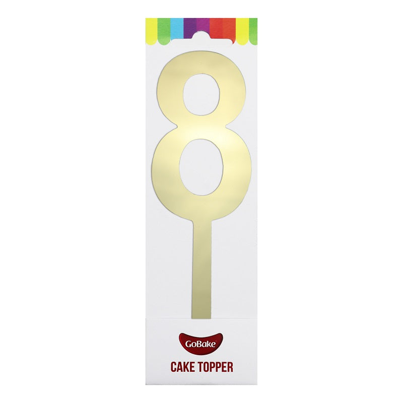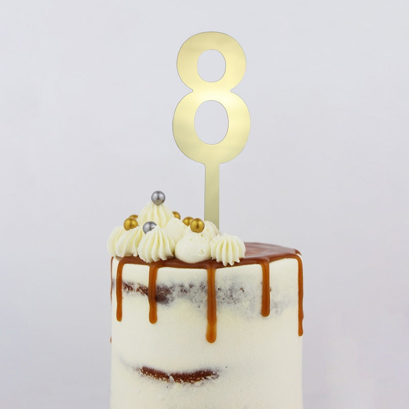 Acrylic mirror gold topper. Number measures aprx 9.5cm high (excluding pick)