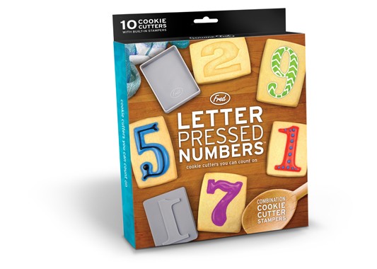 Do the math: numbers made out of cookies are 99% more delicious than the usual kind. Letterpressed Numbers have a punch side for creating crisp shapes and a mold side for getting the numbers looking just right. Hanukkah, birthdays, anniversaries, learning to count...a plateful of these cookies adds up to a great time! Molded from durable, food-safe ABS plastic and packed in a reusable storage tray inside a colorful peggable giftbox. (Matches LetterPressed alphabet set)