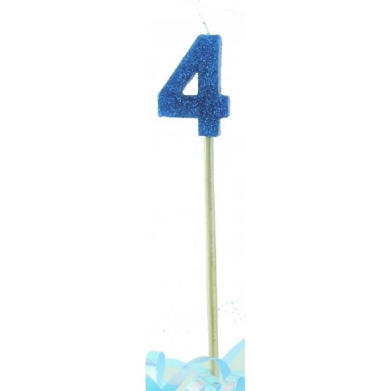 Age number candle long wooden pick - Number 4 - Blue Glitter