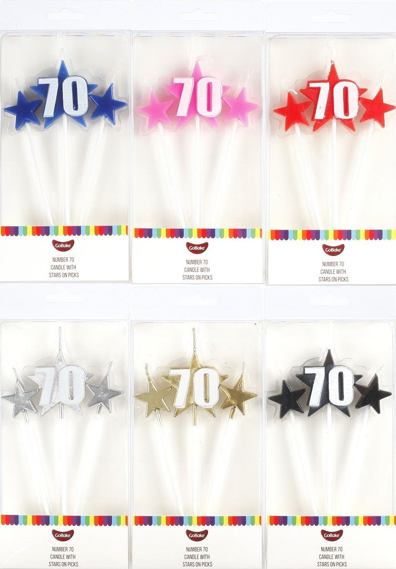 Fun number candle with 2 matching star candles picks. Simply press down pick in to your cake, for an instant fun decoration