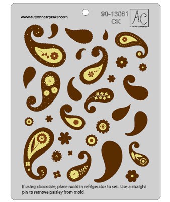 Enhance cakes, cupcakes and candies with the paisley fondant mold. Coordinates with the Paisley mint mold. Great for using with fondant, provides excellent detail without the work of hand molding. Can also be used with chocolate. Cavities range in size from 1/4" to 2 1/8". Hand wash only
