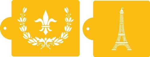 This is a beautiful Parisian theme two stencil set that is perfect as shown or for combining with a monogram. The stencils are cut on durable 10 mil food grade plastic. The Fleur de Lis side measures 3.75"H x 5"W and the Eiffel Tower Side measures 3.75" H x 1.8" wide.