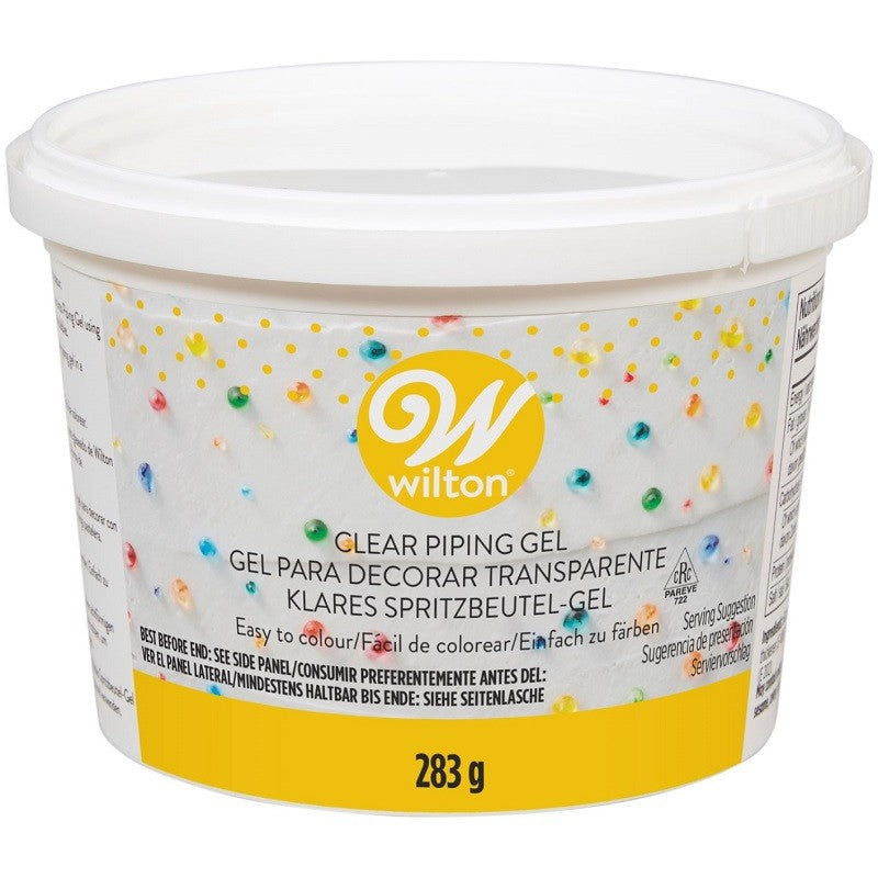 Pipe designs and messages or glaze cakes before icing. Use clear or tint with icing colour. Adding blue makes great water. Try these other uses for piping gel: Stabilized whipped cream (whip pint heavy whipping cream to soft peak stage, add 2 tablespoons piping gel and continue to whip to stiff peaks), glaze fruit and baked goods; crumb coat cakes before covering with rolled fondant.
