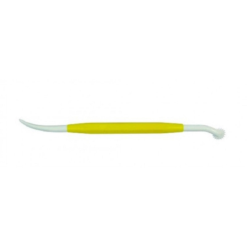 This tool has wheel at one end, for creating a stitched line or quilted effect. The other end has a veiner.