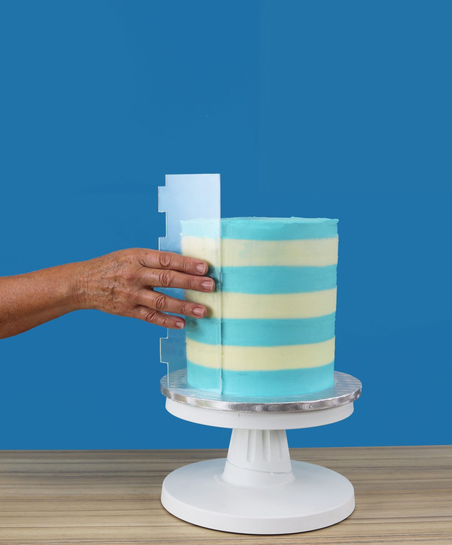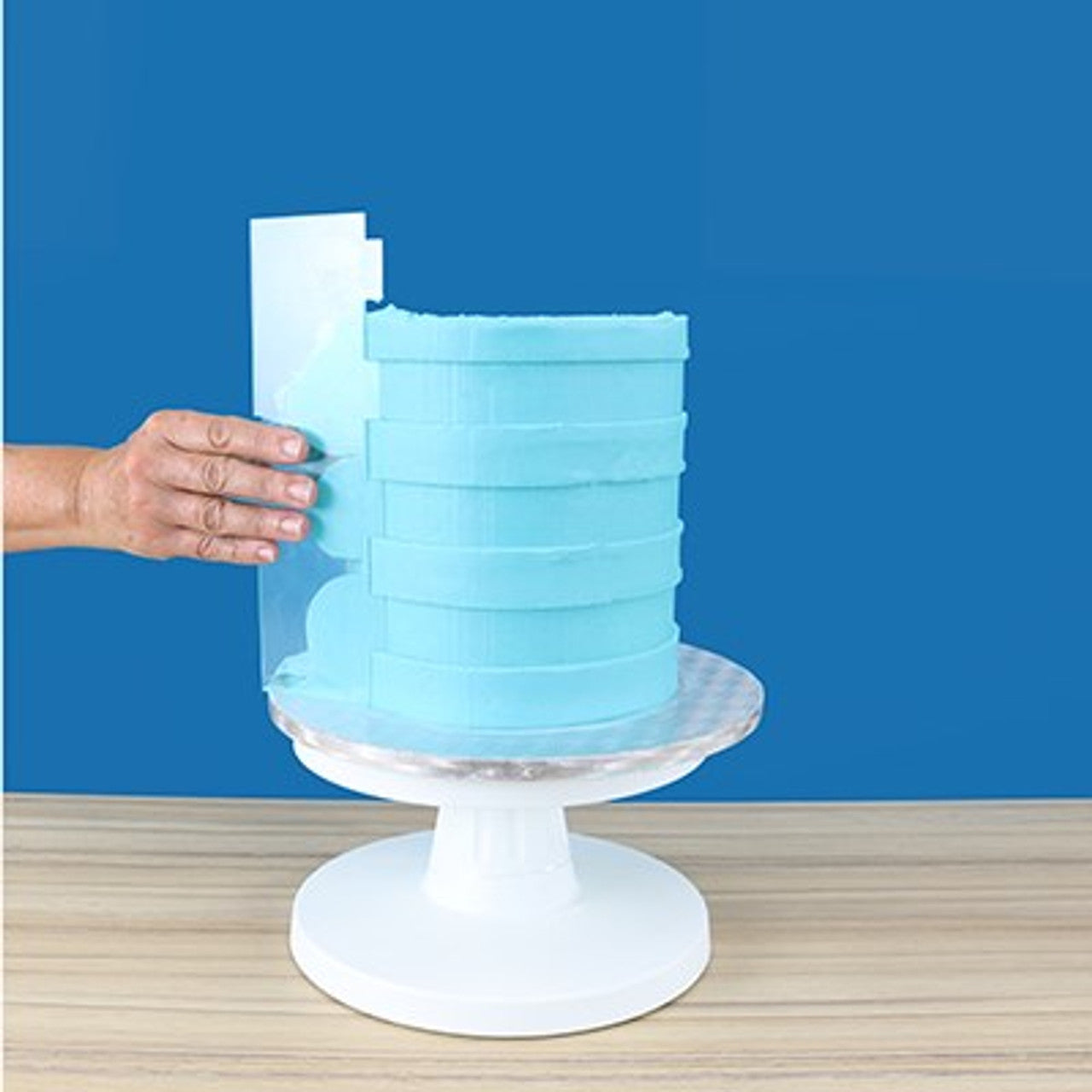 The PME tall patterned edge side scrapers stripes is a handy tool that you can use to make a smooth or striped buttercream cake! The two sides of the scraper can be used, one side is smooth and the other side has a stripe pattern. Also suitable to use with chocolate or royal icing. Size: approx. 8 x 25.5 cm. Made of food grade acrylic.