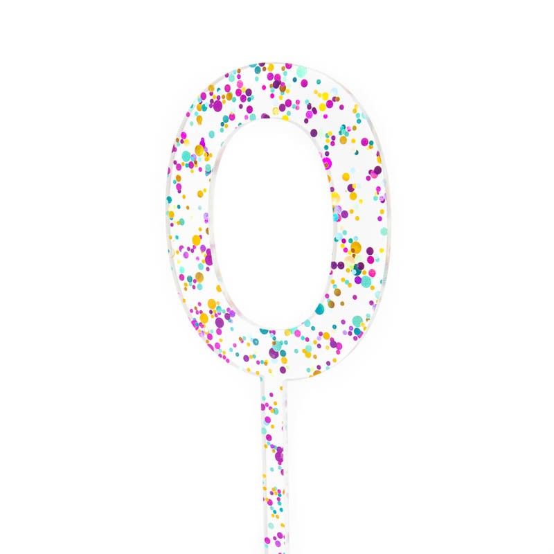 RAINBOW GLITTER NUMBER 0 CAKE TOPPER