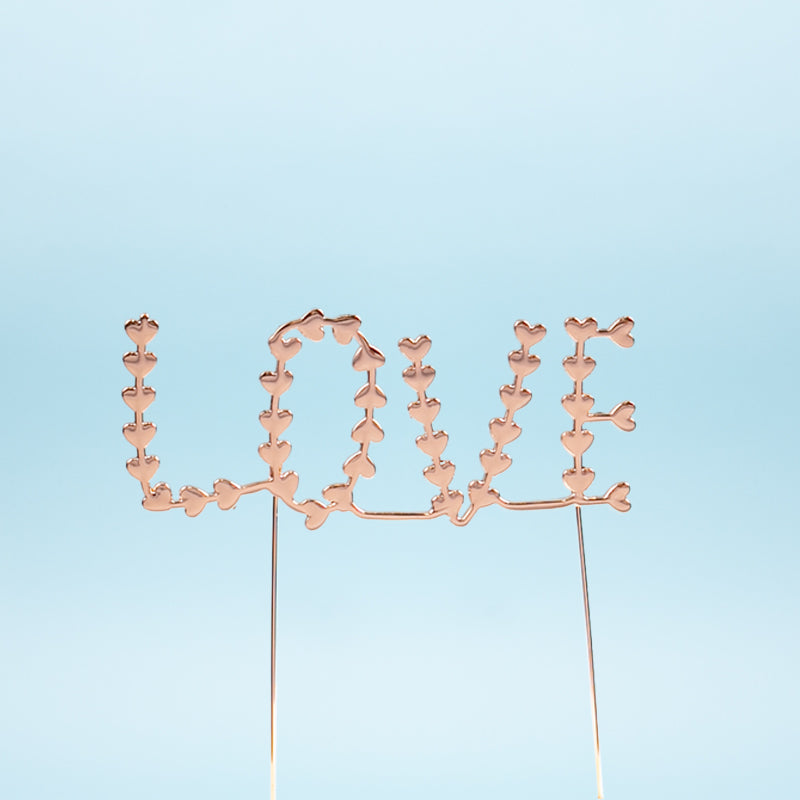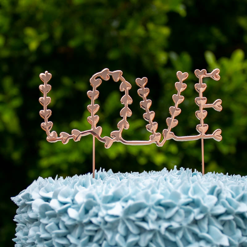 Elegant statement topper made from plated metal. A wonderful keep sake or reusable cake topper.
