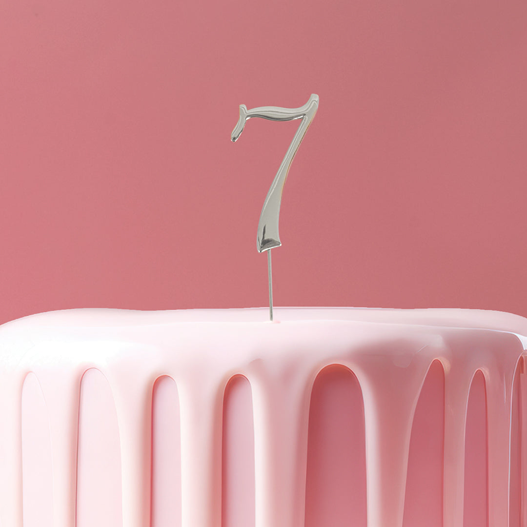 Silver tone metal. Numeral is aprx 7cm high, with an 11cm pick attached.