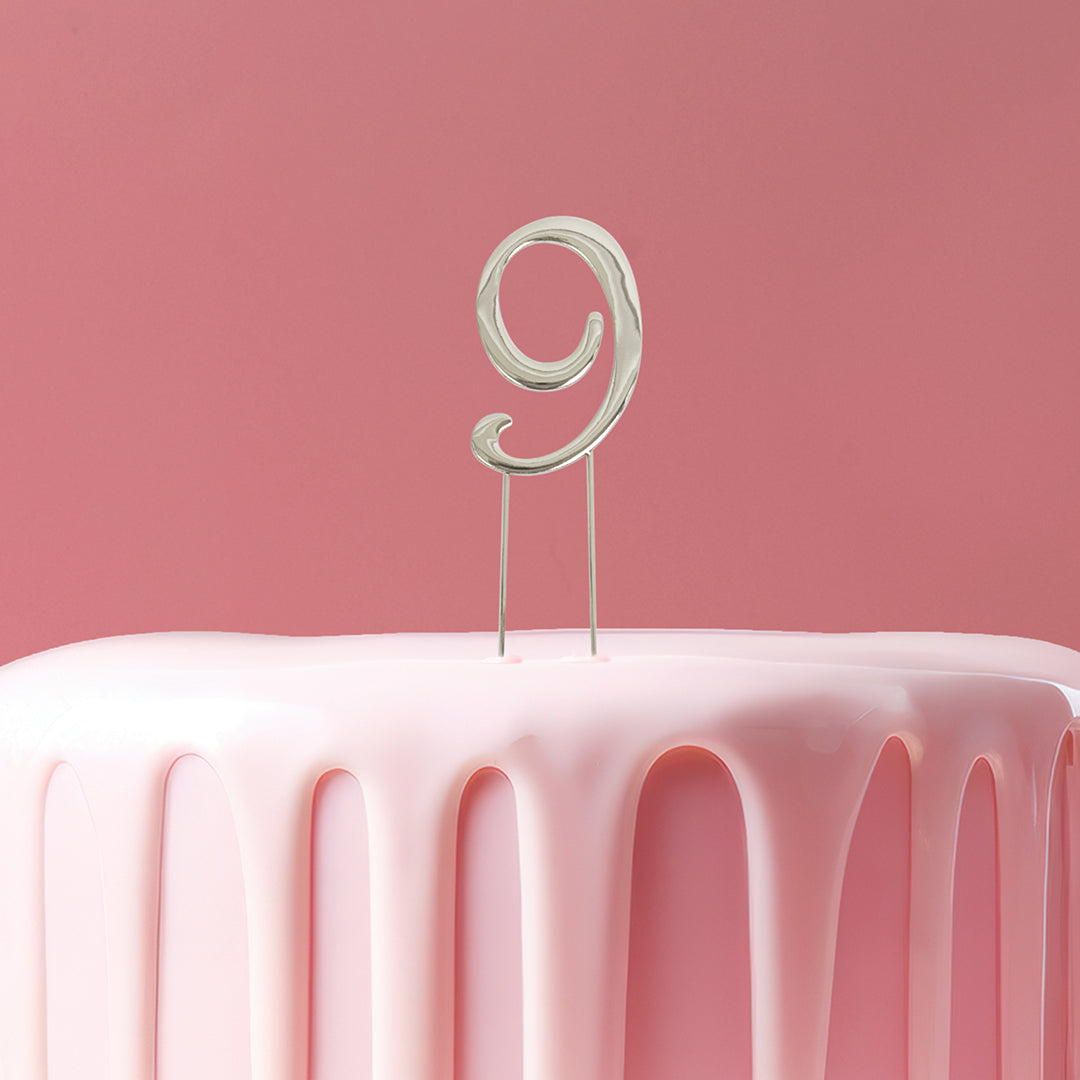 Silver metal numeral 9 cake topper pick