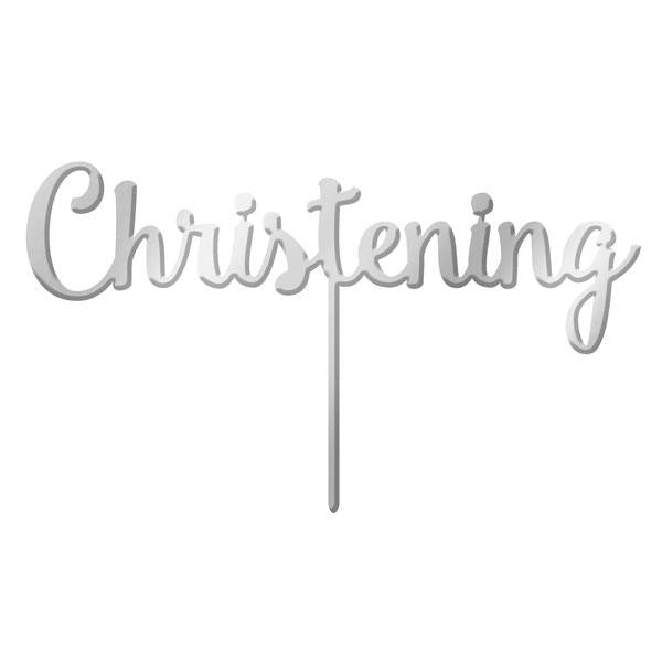 Silver Mirror Acrylic cake topper pick Christening