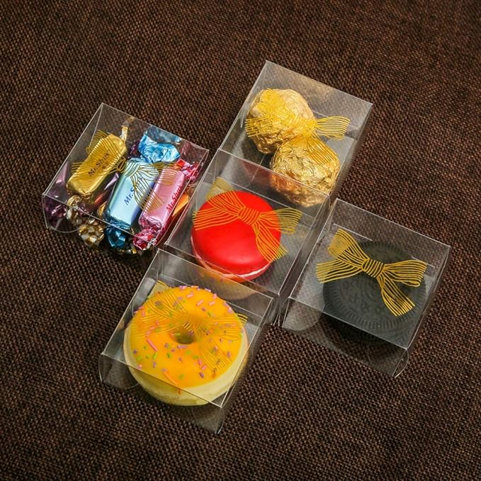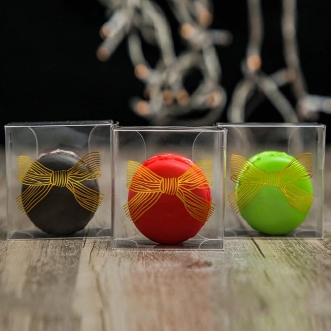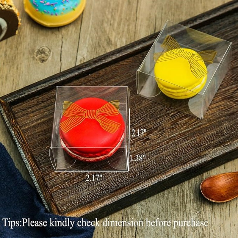 Small clear cake box with gold bow fits 1 macarons fudge cookies & desserts too Pack 50