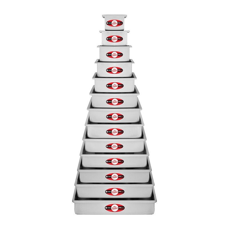 Bake cakes for your next birthday, holiday and wedding celebrations with Fat Daddio’s ProSeries Anodized Aluminum Square Cake Pans. Ideal for square tiered and layered cakes, brownies, blondies, pastries and bar-type cookies. Seamless with square corners and straight sides. 1/2" rim for easy-handling. Safe for tomato and citrus-based foods. Perfect for casseroles, lasagnas, roasts and more. Built to last through daily use in both the home kitchen and commercial establishments.