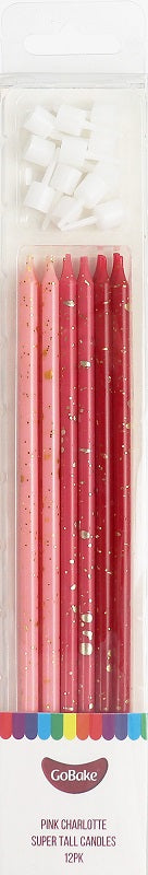 Super Tall Ombre Pink Charlotte long candles 18cm (12PK)