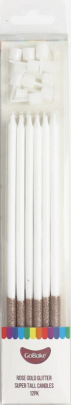 Super Tall Rose Gold glitter white long candles 18cm (12PK)