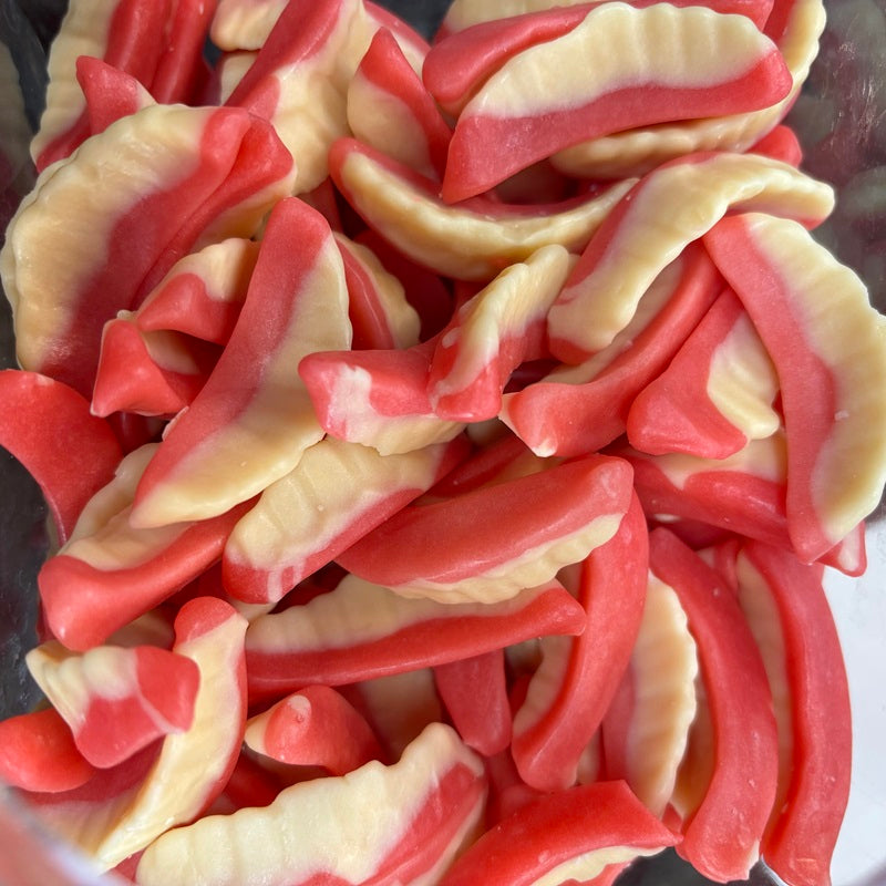 Ingredients: Sugar, Glucose Syrup (From Maize), Gelatine (Halal from Beef) Modified Maize Starch (1041), Acid (330), Lactose (Milk), Flavour, Colour (171,124), Glazing Agent (Vegetable Oil, 903)