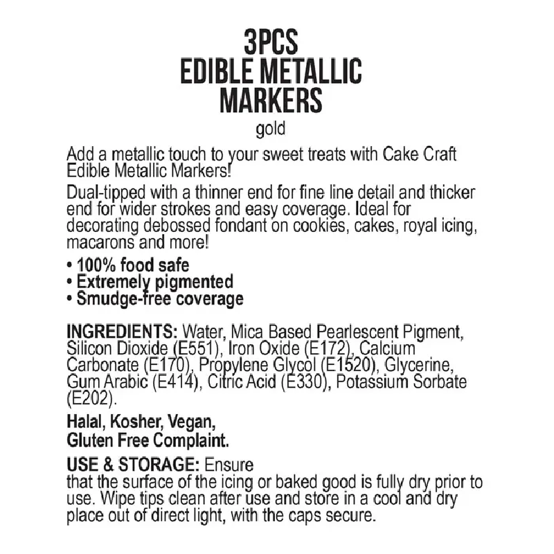 Vivid Edible Metallic twin tip marker pens by Cake Craft Pack of 3 GOLD