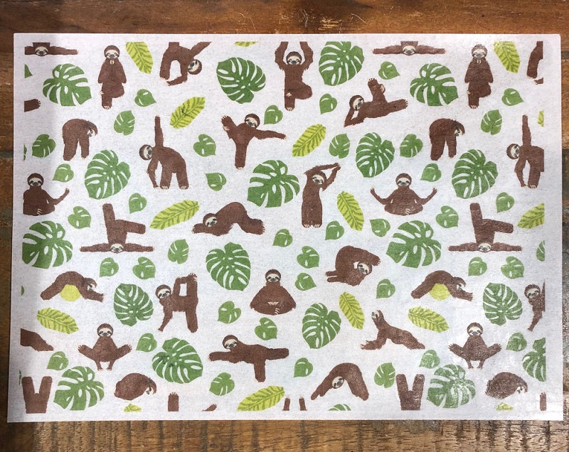 Wafer paper sheet Sloth with Monstera leaf leaves