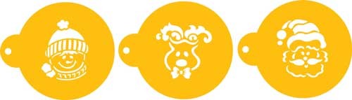 Perfect for creating Christmas cookies, this is a set of three Christmas/Winter designs all of which fit within a 2" circle. The set includes CHILD'S FACE - REINDEER - SANTA FACE. The stencils are made of durable 10 mil food grade plastic for high-quality, professional, repeat use.